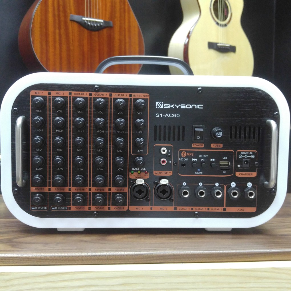 Skysonic S1-AC60 outdoor amplifier是Skysonic最新的產品。首先,它是一個充電式的音箱,可以無須插電在戶外表演使用,續航力達7至10小時(4400MA),是一個為是一個為busking世代而設計的音箱。
