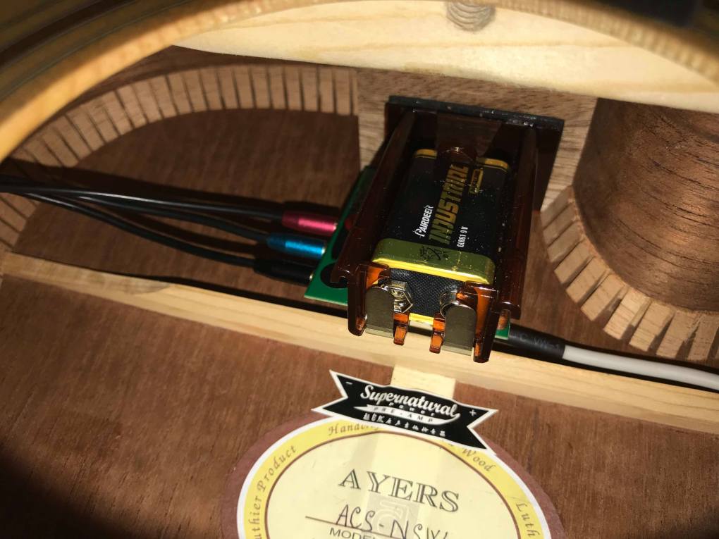 而安裝在在Ayers Japan custom-made guitar系列的Supernatural acoustic preamp也是特別設計的,它們都是Bradley Clark先生跟據不同桶型的Ayers guitar的聲音特性而調整。因此它不但能夠全面反映不同結他的音色,也能有效防止feedback出現。