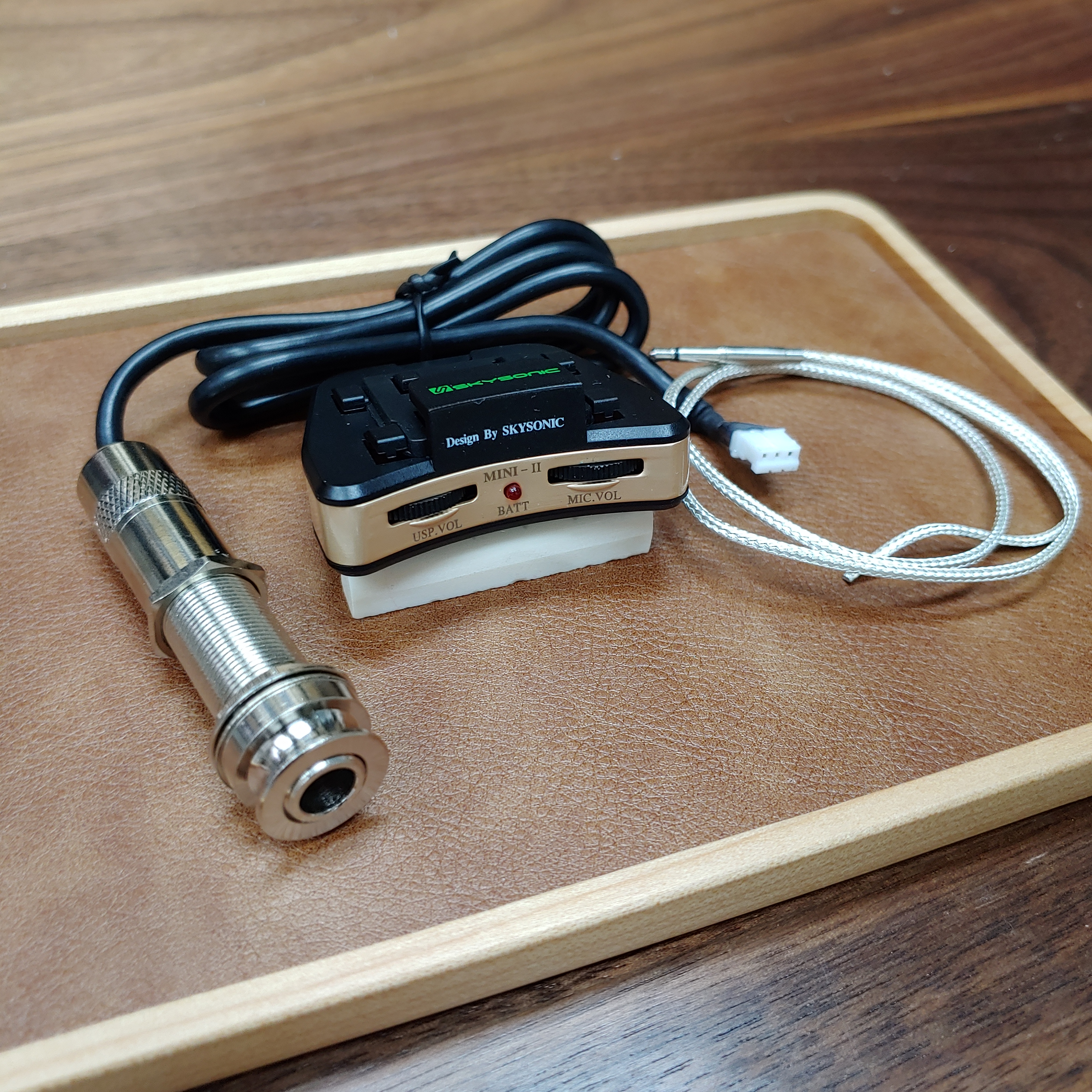 Skysonic Mini-2採用「雙拾音系統」(Dual sources input),運用Under-saddle transducer及Microphone同時接收聲音,令樂手能夠使用打板及各種敲擊技巧(percussive technique),相比市面上不能接收打板聲的一般「單一拾音系統」拾音器,音色更加自然悅耳,更能夠充分發揮樂手各種技藝。