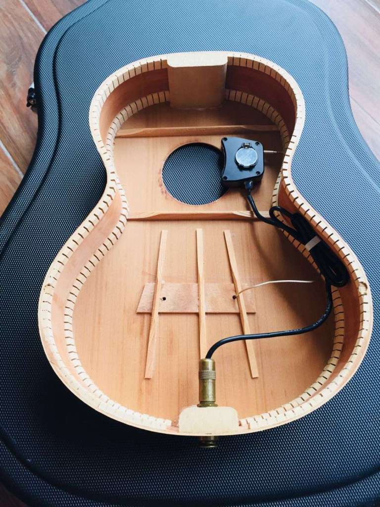 由於Little Martin的音孔內兩邊的音樑比較厚,因此我在Skysonic Mini-2上做了一些改裝