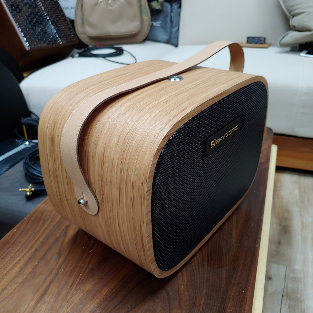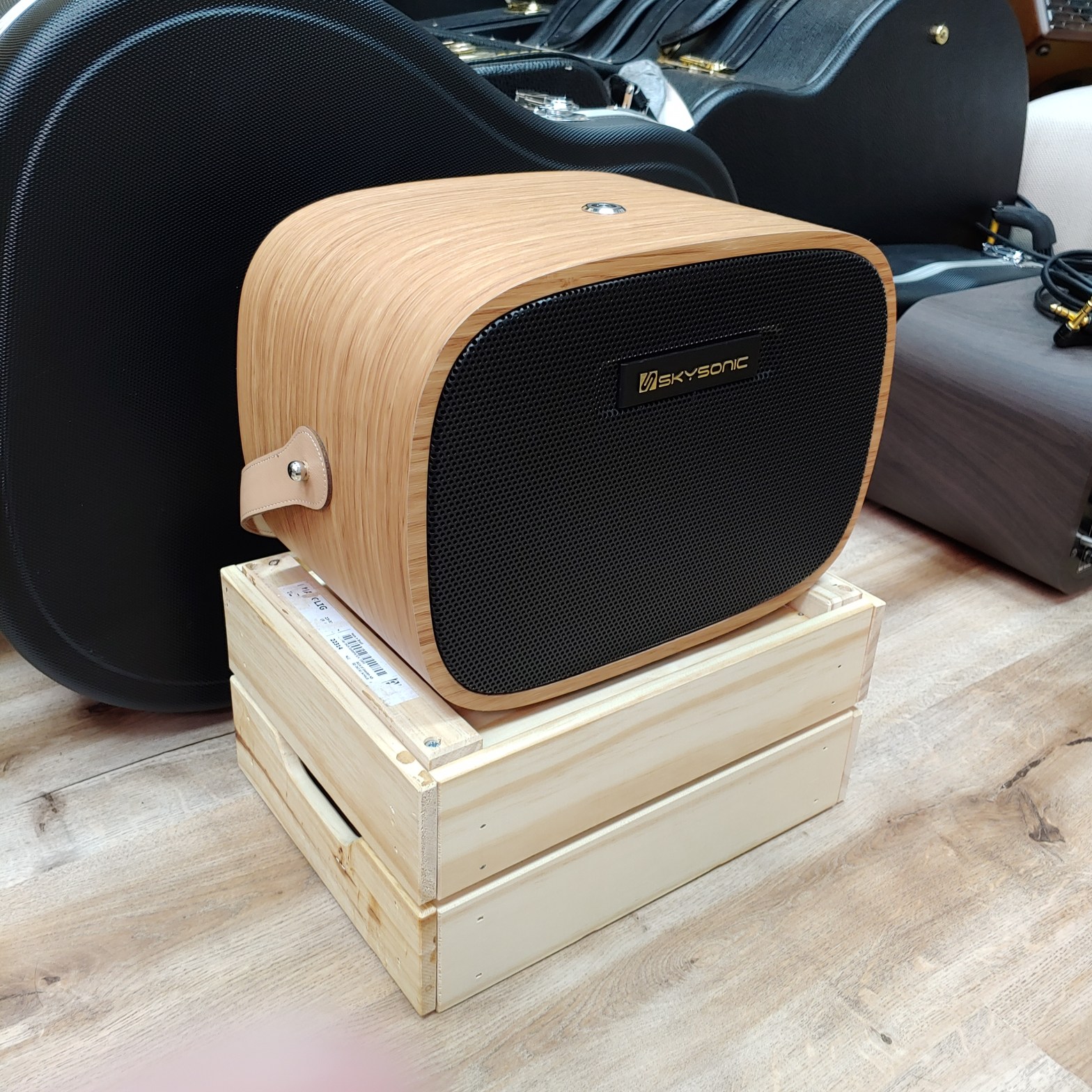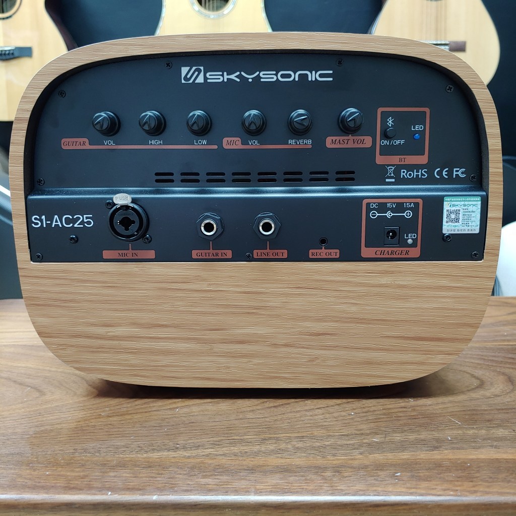 Skysonic S1-AC25是一款可以輕鬆攜帶的木結他音箱,採用充電式電池,無須插電源線就可以在戶外和室內使用。