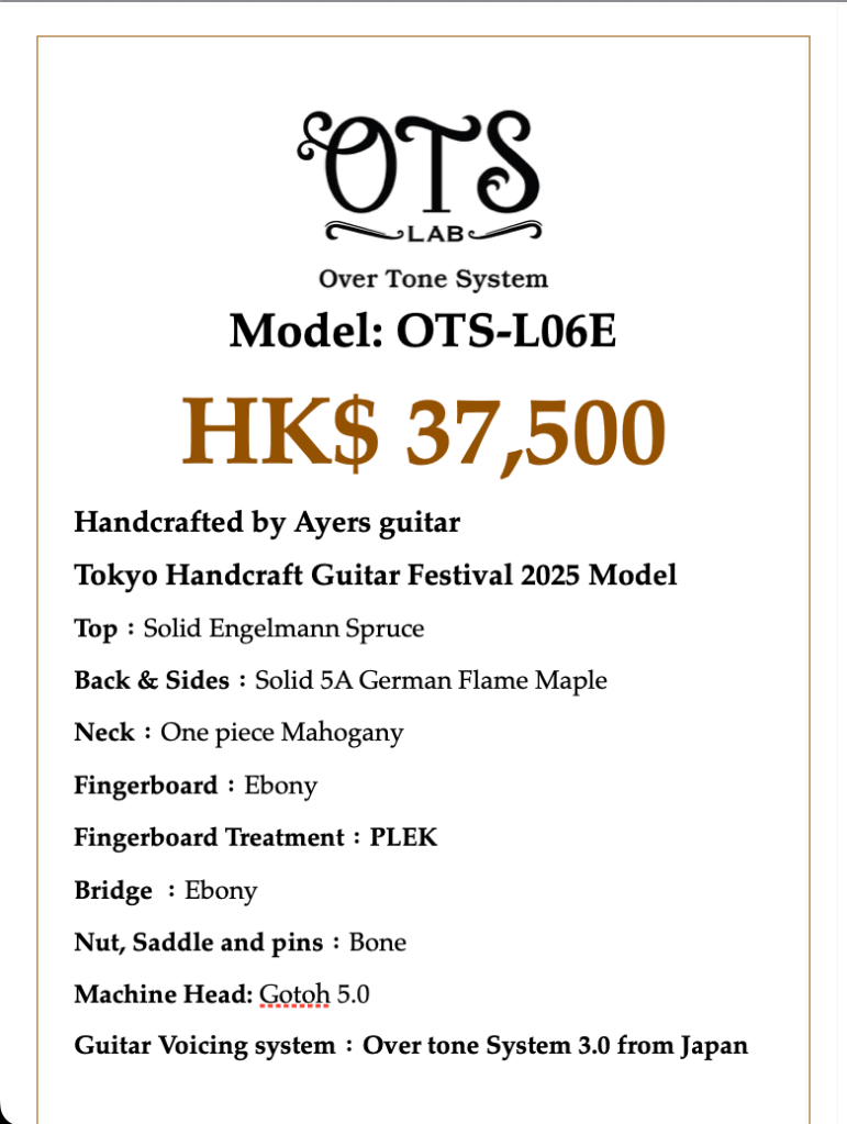 OTS guitar L-06E 分類:Thomas Ng2025-07-13發表於OTS Guitars 分享此文: 按一下以分享至 Facebook(在新視窗中開啟) Facebook 分享到 WhatsApp(在新視窗中開啟) WhatsApp 按一下即可以電子郵件傳送連結給朋友(在新視窗中開啟) 電子郵件 喜歡 正在載入... 相關 發表者:Thomas Ng 喜歡閱讀和音樂的人 檢視更多文章