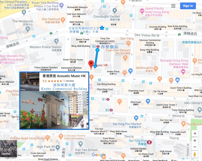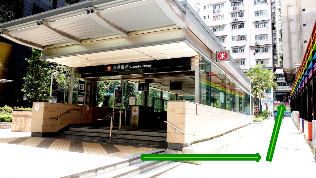 地鐵港島綫西營盤站B3出口上方,出站後調轉行,往彩虹樓梯方行,步行約1分鐘馬上到達。